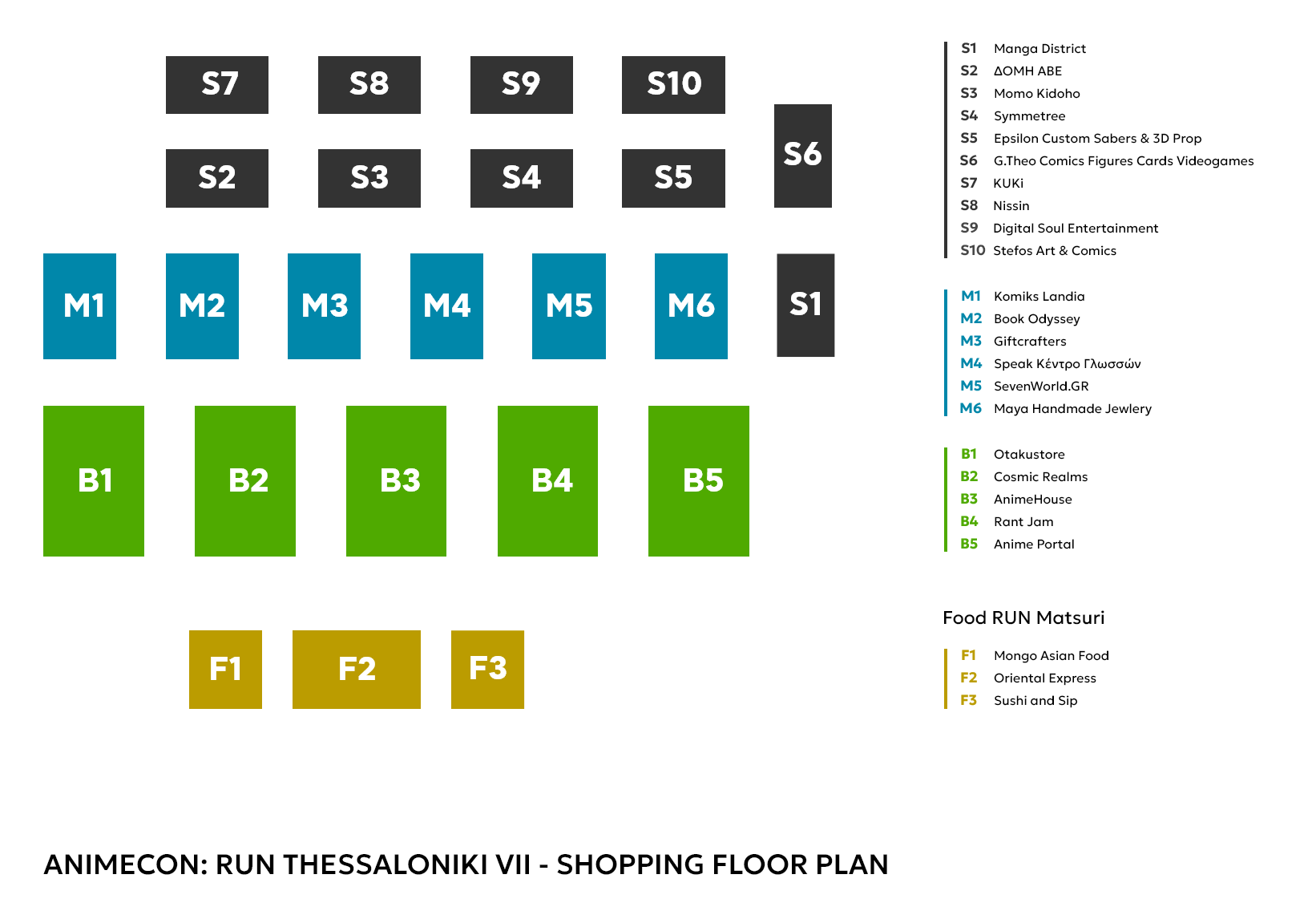 Στο Shopping Hall του AnimeCon: RUN Thessaloniki VI θα μπορέσετε να βρείτε μαγαζιά και χορηγούς με μία τεράστια γκάμα από merchandise των αγαπημένων anime & manga σειρών.