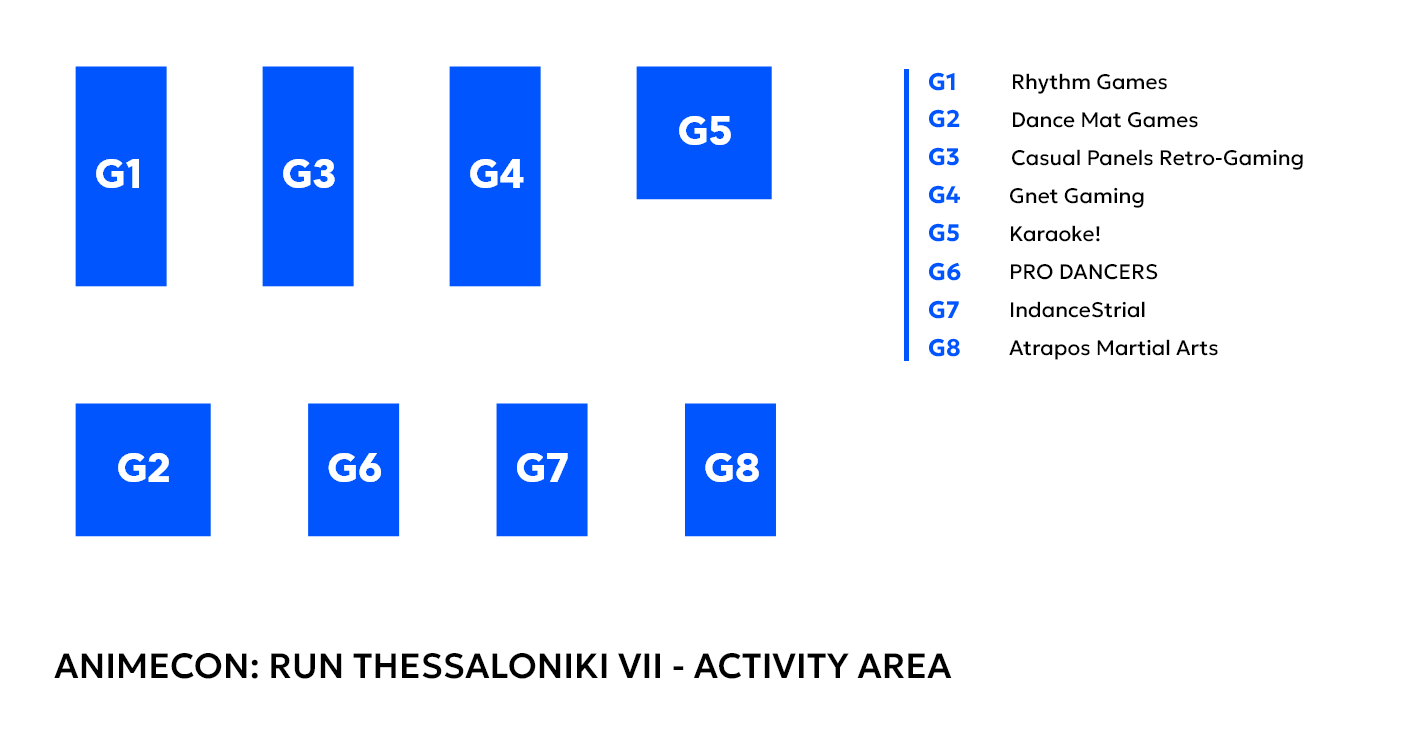 ΠΡΟΣΟΧΗ: Σε περίπτωση καταστροφής του τοίχους πίσω από το stand του εκθέτη, το AnimeCon: RUN Thessaloniki VI δε φέρει καμία ευθύνη και το κόστος επιβαρύνει τον εκθέτη. Επιτρέπεται να στήσετε τα δικά σας ράφια, να κολλήσετε αφίσες, τιμοκαταλόγους και διαφημίσεις μόνο με BlueStick.
